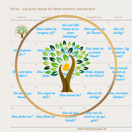 Klarheit und Struktur – zwei Begriffe, die oft nach Ordnung und festen Regeln klingen. Doch was bedeutet das eigentlich für dich persönlich? In diesem Kalenderblatt findest du Fragen, die dir helfen, dich selbst besser zu verstehen und das, was für dich selbstverständlich ist, sichtbar zu machen.