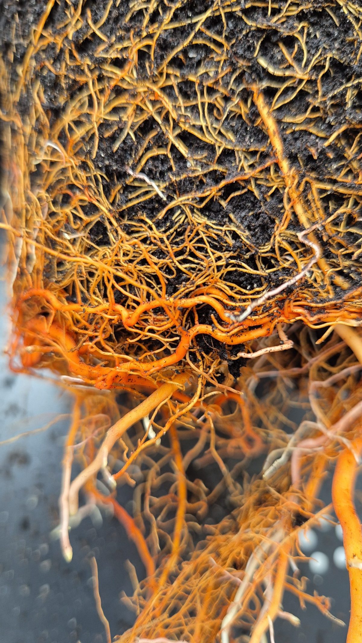Was für ein lebendiges Bild: orangene Wurzeln, die wild und geordnet zugleich aussehen – ein kleines Wunderwerk aus meinem Blumentopf. Der Bambus symbolisiert im Coaching oft Resilienz, innere Stärke und die Fähigkeit, auch unter schwierigen Bedingungen weiterzuwachsen.